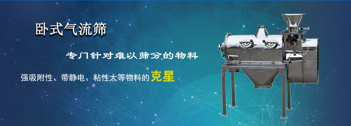 臥式氣流通篩適合150-500目各種粉狀物料的篩選分級,其篩分效率高、產量大、自動進排料、連續作業、防塵性好,使以往其它種類篩分機難以進行高精度篩分作業成為易事。經過對120-180目輕鈣、300目重鈣、400目活性鈣、300目山楂粉、320-500目鋅粉、500目氧化鐵黑等物料的篩分得到了較最佳篩分效果,可得到每平方米篩網面積每小時產量均在一噸左右,同時測得篩分精確度在95%以上,空氣含塵量低于10mg/m3。