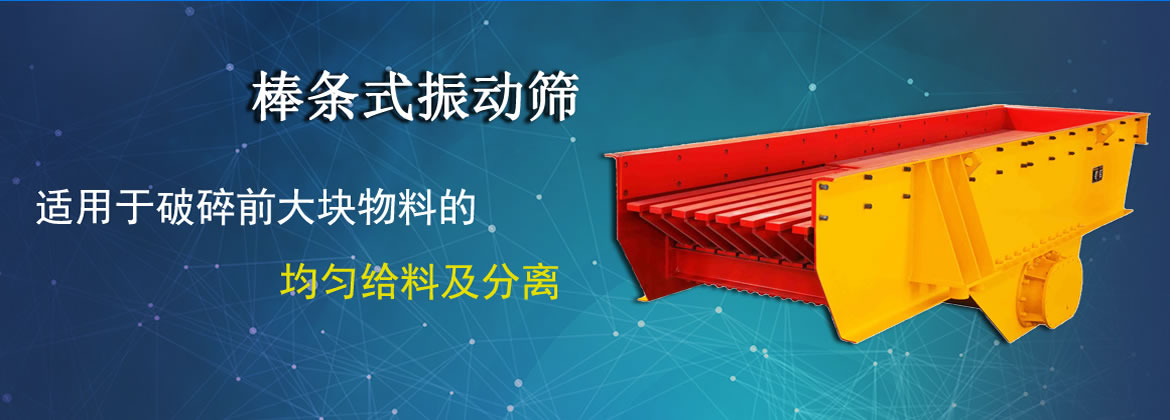 國盛牌棒條式振動篩簡稱棒條篩,采用盲板加棒條形式的給料面,樣式分為:激振器式、振動電機式、吊掛式三種,適用于破碎機前大塊物料的均勻篩分,特別適用于黑色或有色金屬礦石、建筑石料粗碎或中碎前的給料用。